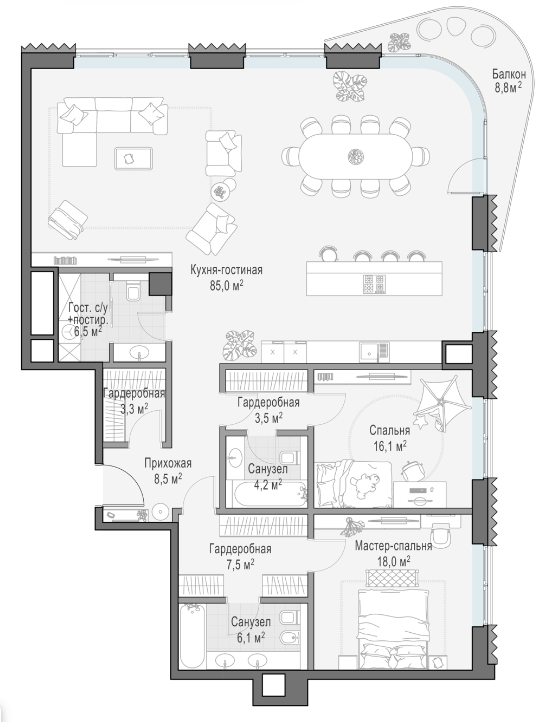 Для будущих жителей «Лаврушинского» соседство с ней — возможность заглядывать к Поленову или Левитану. Серому или Сурикову. В ансамбль Третьяковки входит храм Святителя Николая в Толмачах с чудотворной Владимирской иконой Божией Матери.